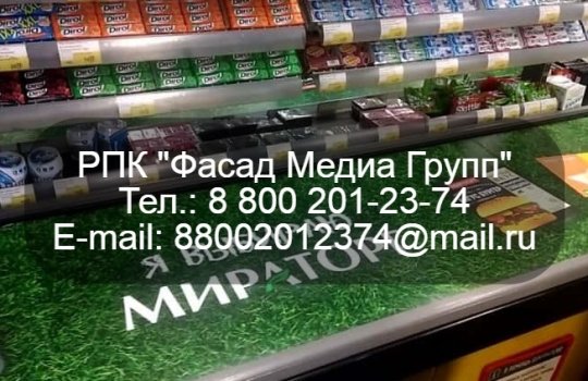РПК «Фасад Медиа Групп» изготовило и разместило рекламу в супермаркете на ленте возле кассы. Реклама носит брендовый характер и направлена на широкую аудиторию. Для размещения рекламы на кассовой ленте обращайтесь к нам. Будем рады сотрудничеству